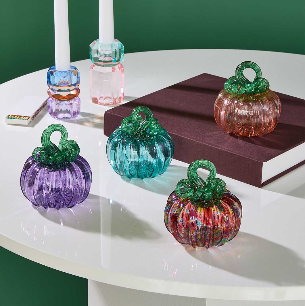 Antolini Glass Co.のテートとジェンマがフィラデルフィアのアトリエで1つ1つ手吹きで作っています。多数の色が混ざり合うことで、光を通すガラスのダイナミックな特性が際立ちます。自然光が差し込む場所に置くと、さまざまな色に変化しながらキラキラと輝きます。