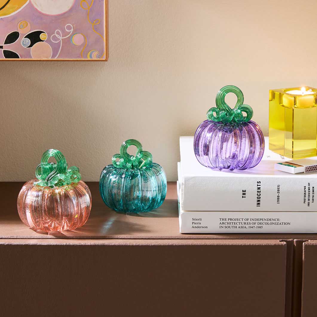 1年中、穏やかな秋を感じられるオブジェです。 Antolini Glass Co.のテートとジェンマがフィラデルフィアのアトリエで1つ1つ手吹きで作ったガラスのオブジェには、伝統と現代技術が融合されています。永く使えるように作られた逸品で、サイドテーブルやダイニングテーブルに置くと美しく映えます。