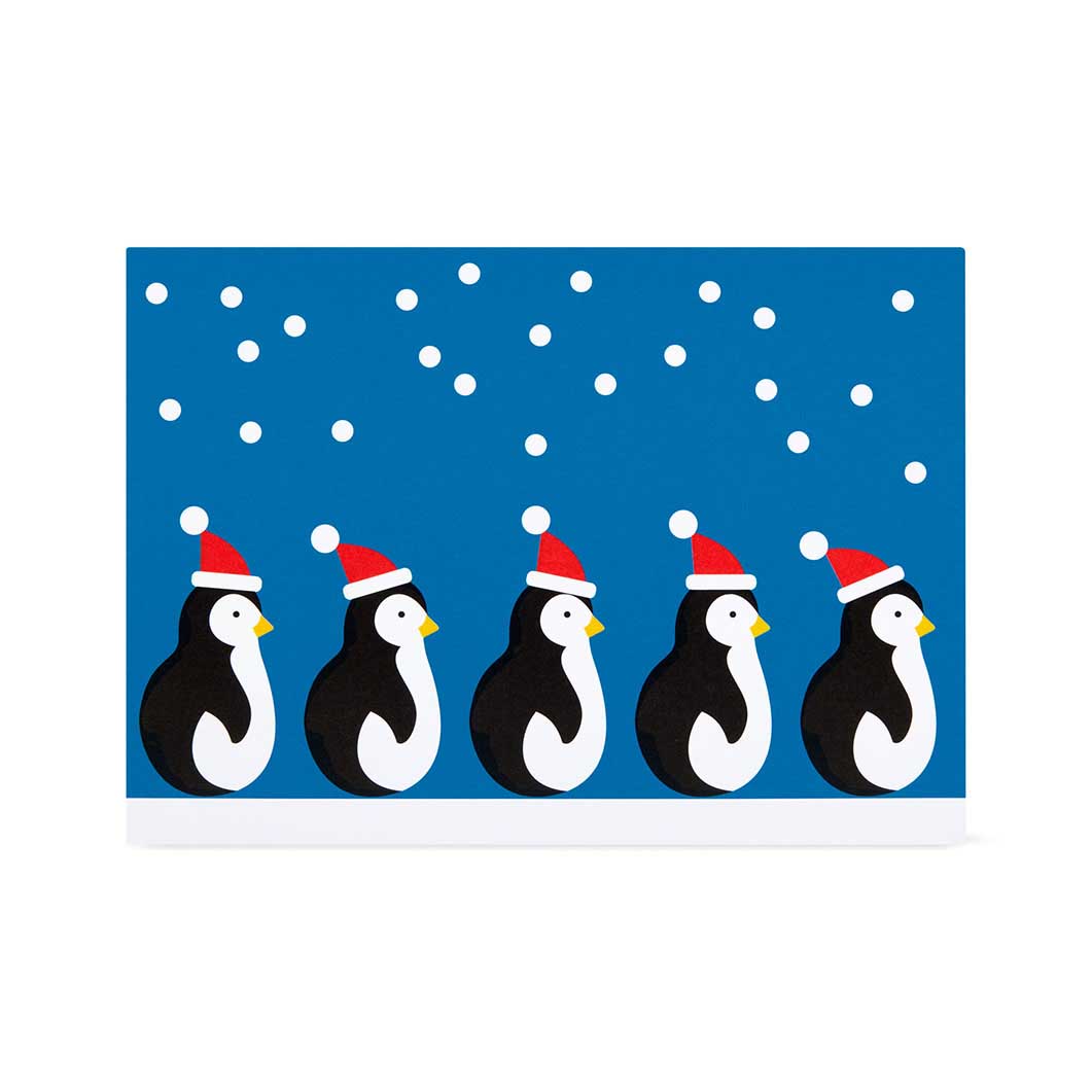 ポップアップの仕掛けはスライダー式で、スライドさせるとペンギンが動きます。デザインや設計はデザイナーの手作りで、組み立てもひとつひとつ丁寧に手作業で仕上げているので、単なるグリーティングカードというより、ちょっとしたオブジェのように楽しめます。