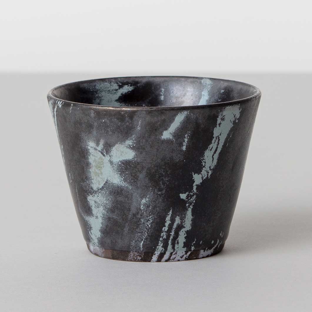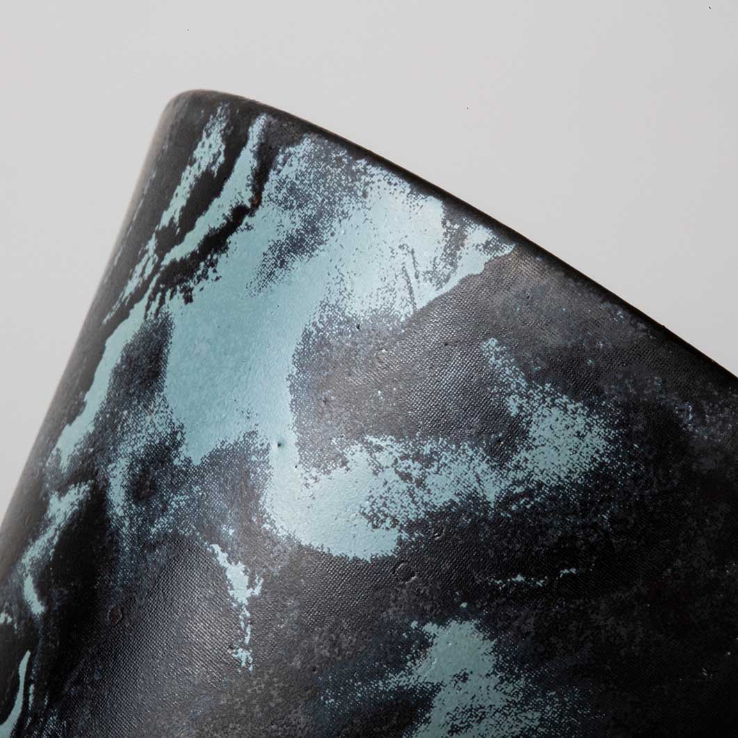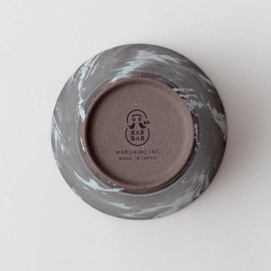 柄事に異なる土や釉薬をかけたベースの上に上絵転写を貼っています。従来の上絵転写では表現できなかった有機的な美しさを職人の高度な技術によって実現。ハイブリッドなやきものの表情を楽しめます。食器としては使うことは勿論、小物入れなどインテリアとしてもご使用いただくこともおすすめです。大気圏に浮かぶ雲の様子を表現、部屋の中に広がる小宇宙に凹凸感とメタリック感の出る釉薬に移ろいゆく雲のイメージが美しく調和しています。