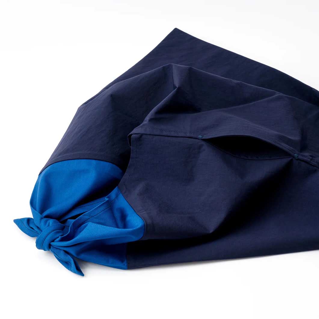 三角の形状をした持ち手(結び目)は“結び易さ”“持ち易さ”を重視したデザイン。“TASUKI ”の結び目部分とAZUMA BAGの結び目部分を真結びすることで、二つが合わさり斜めがけ、肩掛け袋として使用可能。A4サイズのノートや13インチのノートPCが入り普段使いに丁度いいサイズです。AZUMABAGを小さく畳めば、TASUKI BAGの中に収納もできます。