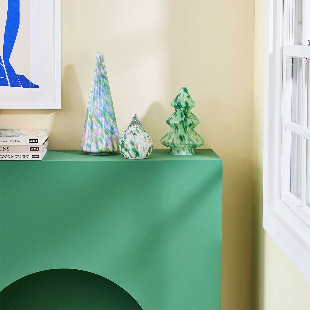 すっきりとしたラインのモダンなツリーがホリデーシーズンの空間をパッと明るくしてくれます。