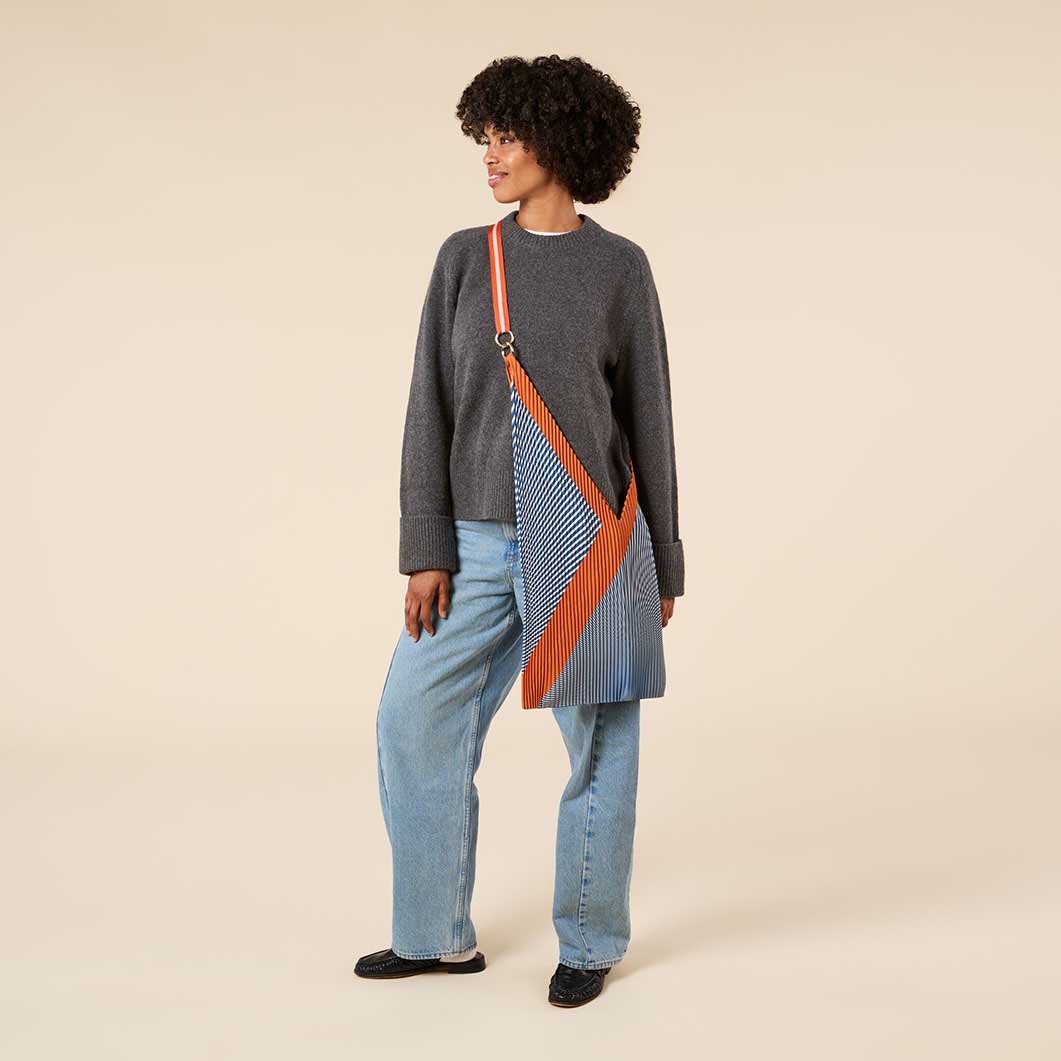 2014年に創業したミラノを拠点とするファッション小物ブランド「Multitudes」がデザインを手掛けたバッグは目を引く存在感があり、再生ポリエステルを使用したシルクのような素材を採用しています。