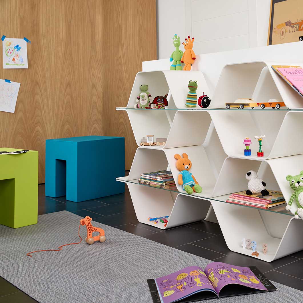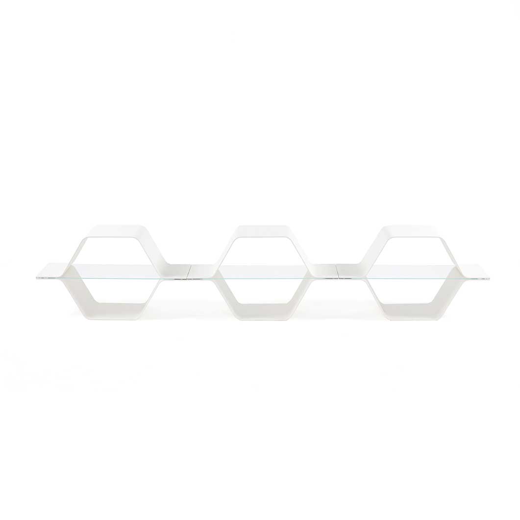 Bill Curry(ビル・カリー)の先進的なアプローチを体現するハニカムモジュ ラーシェルフは、宇宙時代のイノベーションとサステナブルデザインを融合させ、時代を超越したアイデアが未来 に向けて進化できることを証明しています。