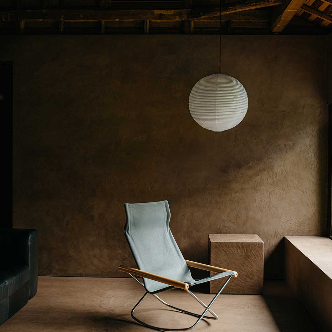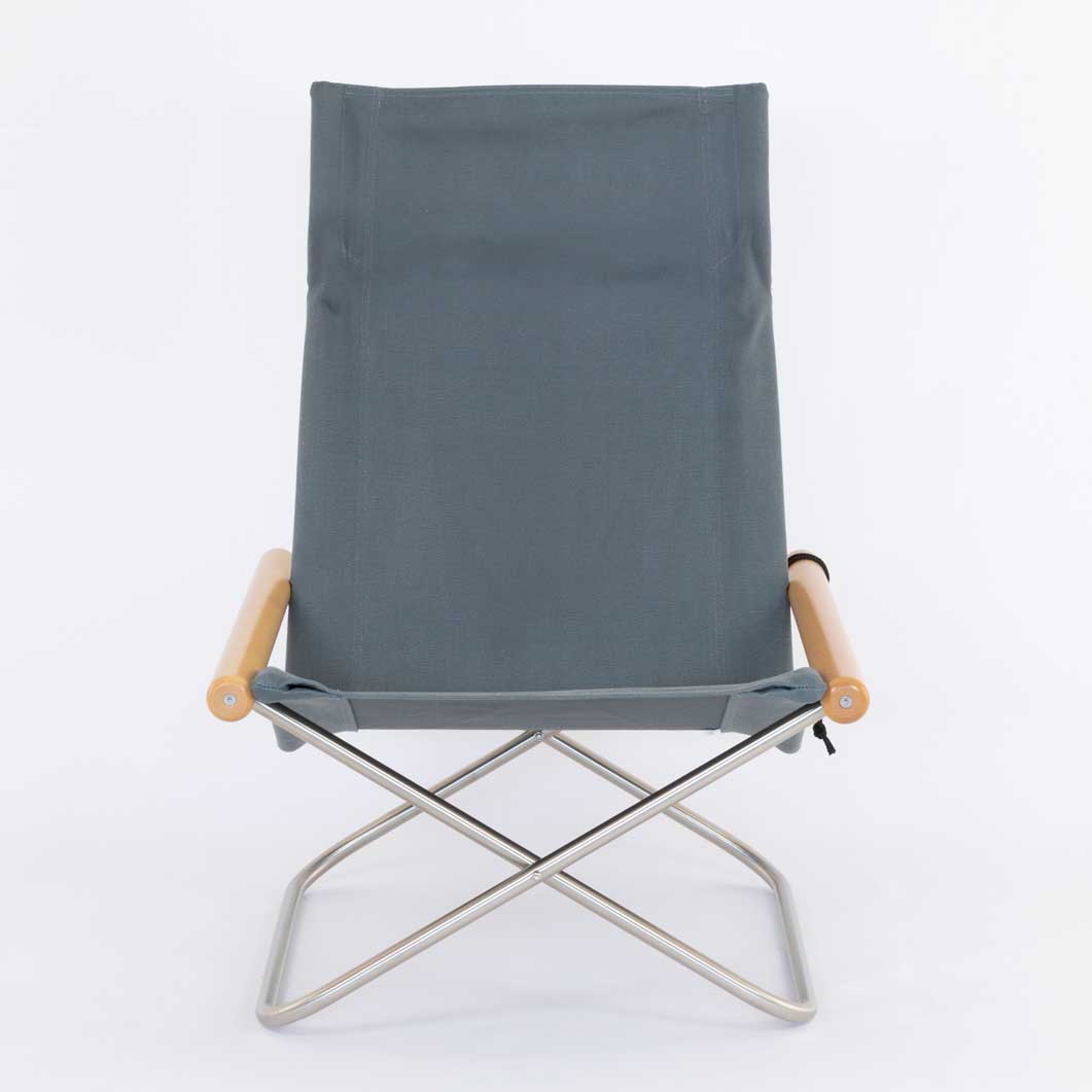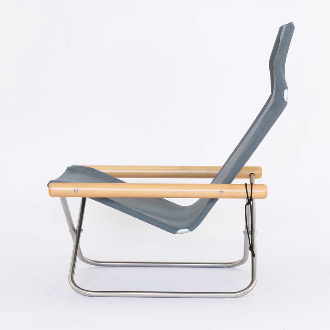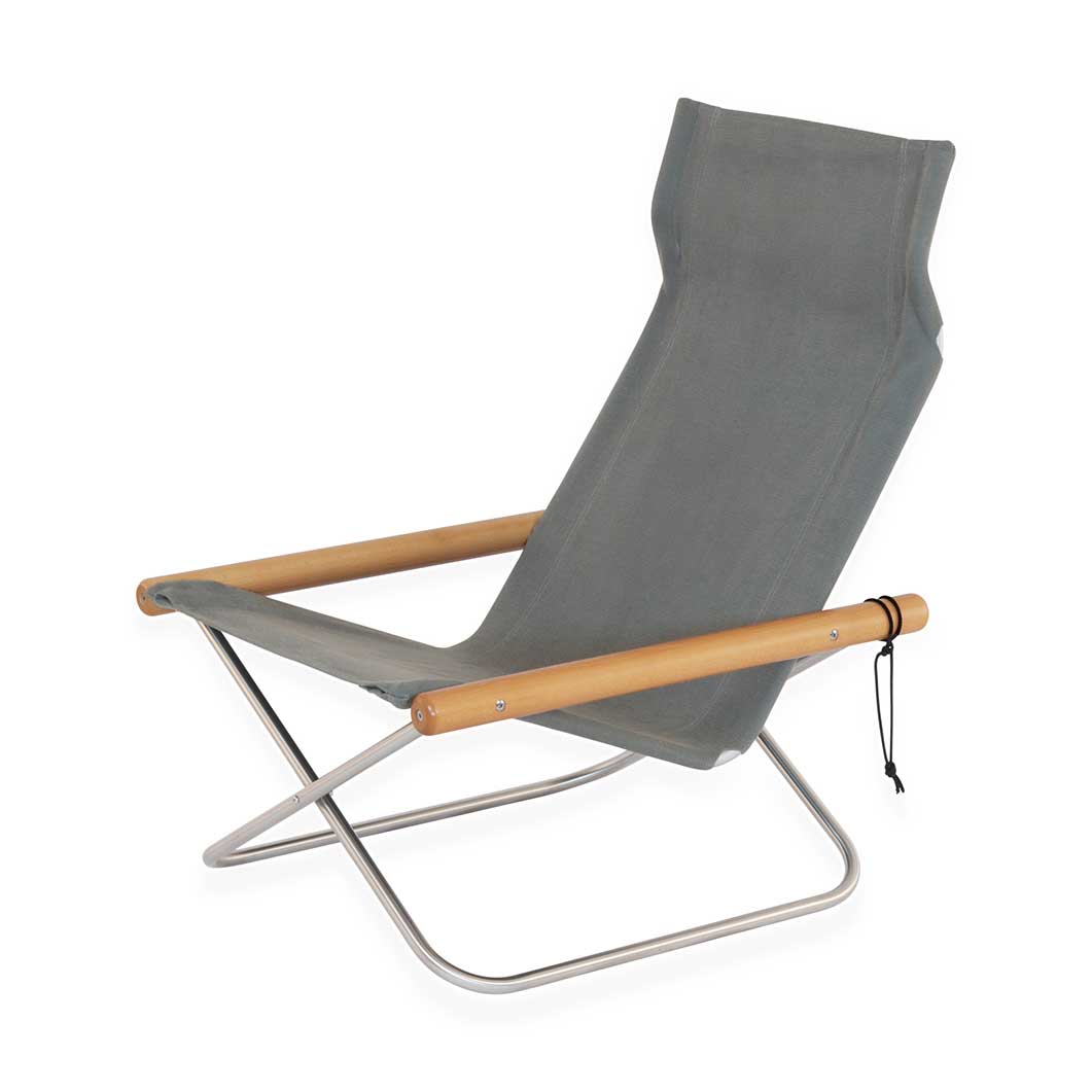 デザイナーである新居 猛は1950年代から折り畳み椅子づくりをはじめ、試行錯誤の末にたどり着いたのが、脚部のX構造でした。さらに木製の肘かけ、シートには綿の厚織生地を採用。すべてが相まって、快適な座り心地を実現しています。ニーチェアエックスは、その後に続く「ニーチェアエックスシリーズ」の原点であり、生涯折り畳み椅子の開発に取り組んだ新居 猛の集大成といえる製品です。