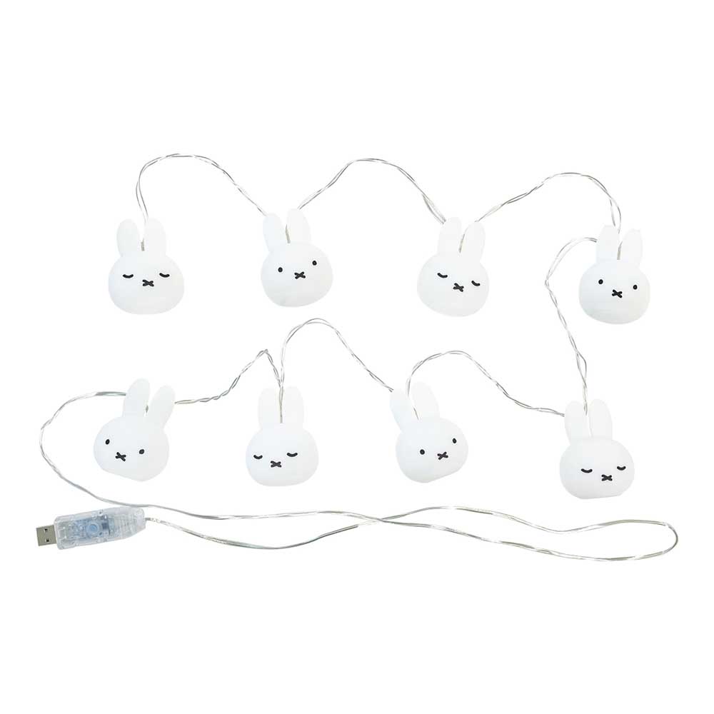 シンプルミッフィーとおやすみミッフィーのお顔が交互に配置され、やさしい色味の光でお部屋を心地よく照らします。間接照明としてはもちろん、寝室や子ども部屋、パーティーの装飾にもおすすめです。