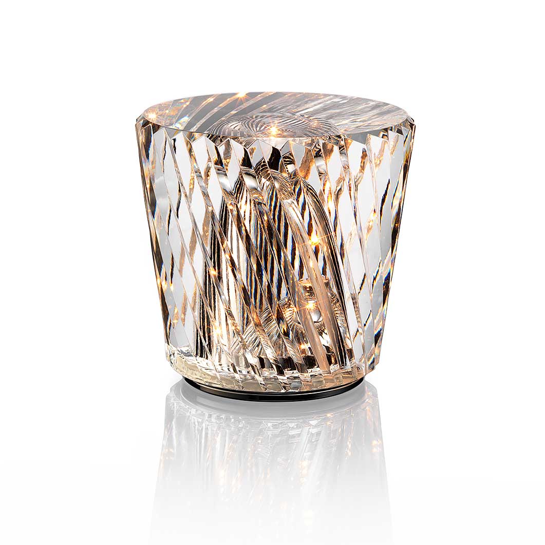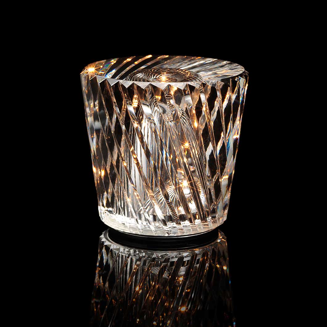 ガラス内部には、緻密な光の反射があらゆる方向に繰り返されます。テーブルにも放射状の光が広がり、華やかな場を作り出します。