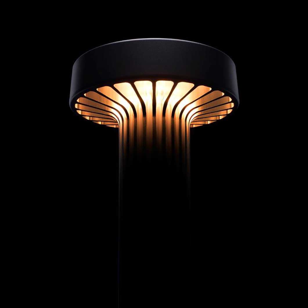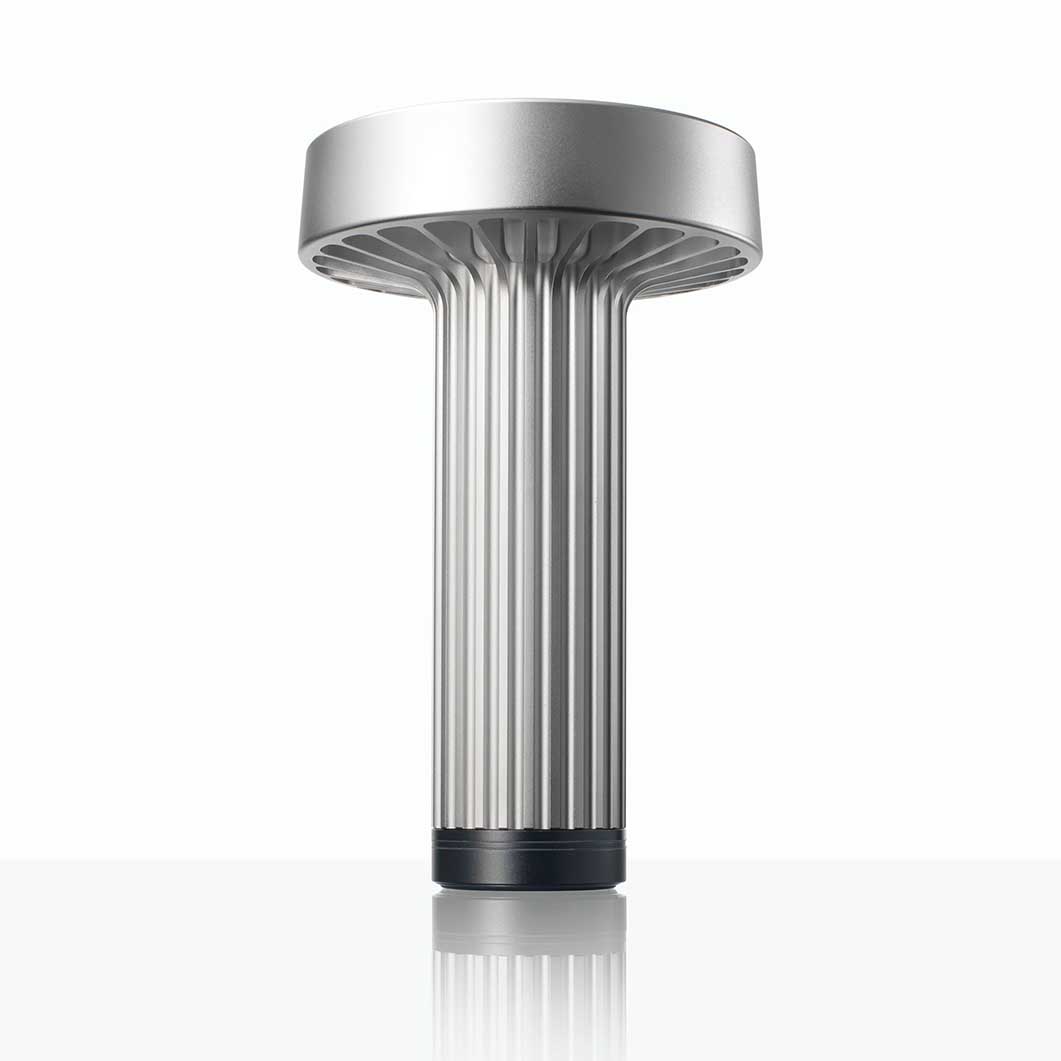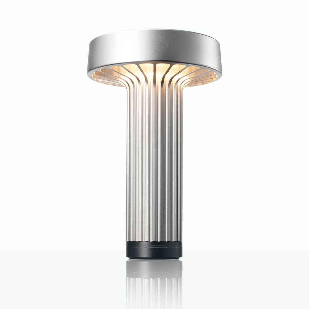 本体はアルミニウムの一体成型で内側と外側が表裏一体となった構造が特徴です。強度と放熱機能を保ちながらランプシェードとしても機能するユニークな設計。グリップの溝に美しいグラデーション描きながらテーブル上へ優しい光を落とします。