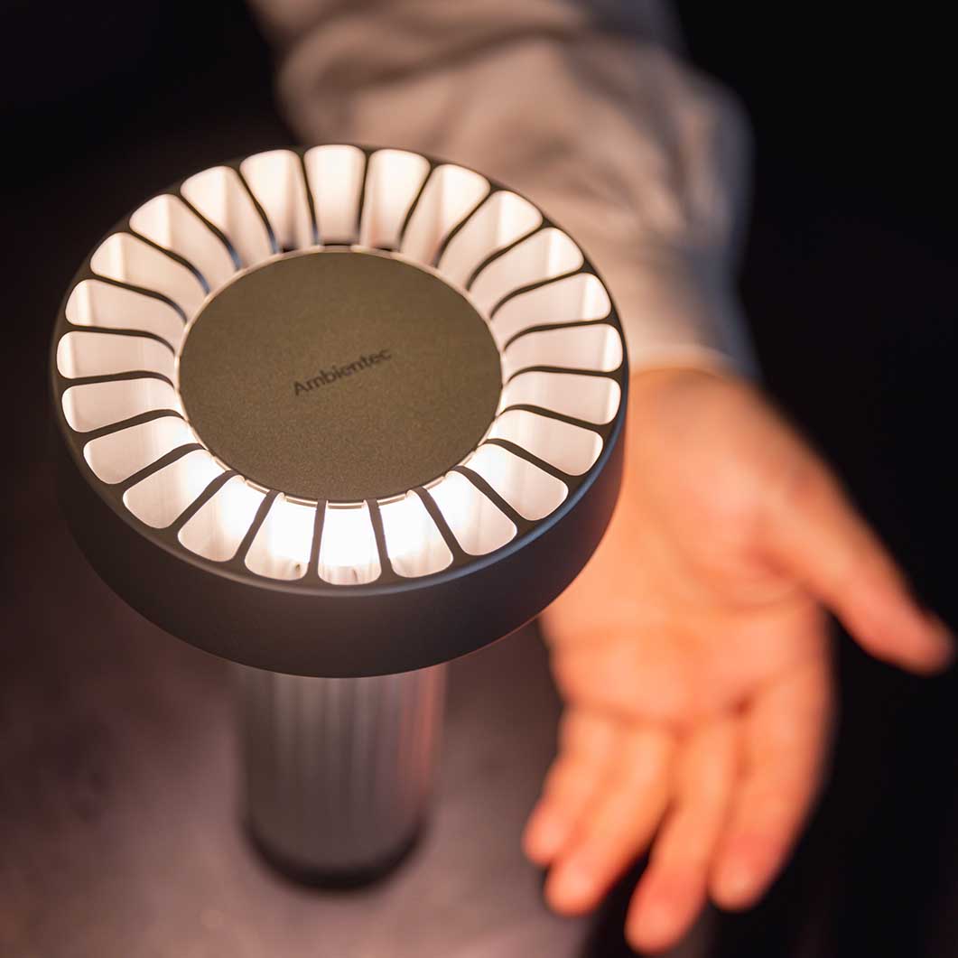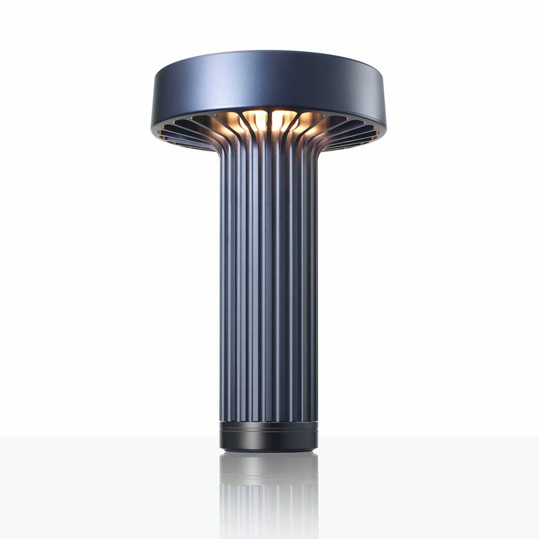 本体はアルミニウムの一体成型で内側と外側が表裏一体となった構造が特徴です。強度と放熱機能を保ちながらランプシェードとしても機能するユニークな設計。グリップの溝に美しいグラデーション描きながらテーブル上へ優しい光を落とします。
