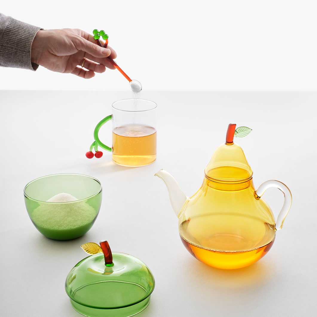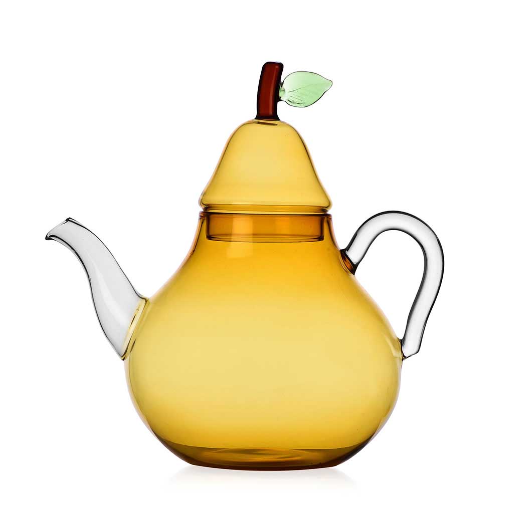 Ichendorf Milano(イッケンドルフ・ミラノ)のフルーツ&フラワーコレクションのアイテムです。アンバー色をしたボディ、グリーンの葉が付いたブラウンの茎、透明なハンドルと注ぎ口。ホウケイ酸ガラスを用い、ハンドメイドで形作られています。ポットにティーバッグをそのまま浸すほか、金属のティーボール(付属なし)に入れた茶葉でお茶を淹れることも可能です。ホウケイ酸ガラスは耐久性と耐熱性が高いことで知られています。