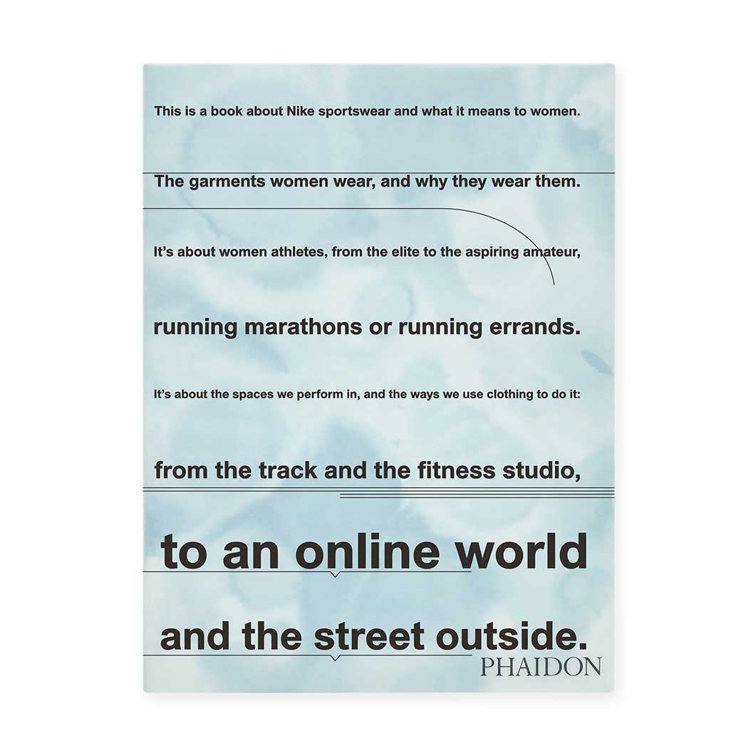 各章ではNikeのアスリートやトレーナー、その他の協力者へのインタビューと、文化的論者による示唆に富んだテキストを掲載しています。350ページを超える本文と575点の図版を通じて、本書は女性向けスポーツアパレルの発展を可視化するだけでなく、あらゆる文脈において「女性と自認するアスリート」が最も力強く感じられる可能性を示しています。