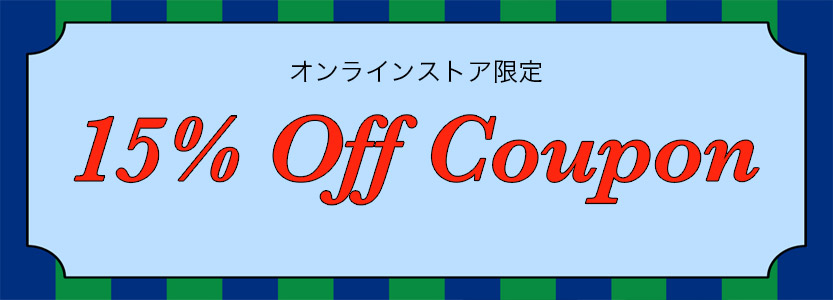 オンラインストア限定 注文時にクーポンのご利用で対象商品が15%Off